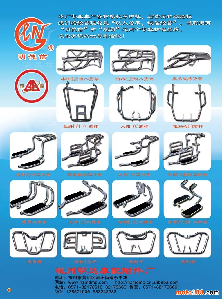 3、《中國摩托車配件生產企業大全(網址總匯)》第十一次升級版,在會上及各大市場同時發送。全國大市場還會送書上門,沒參會的企業可在門上坐等,愿意付郵費(快遞到付也可)的企業我們都會快遞送達。