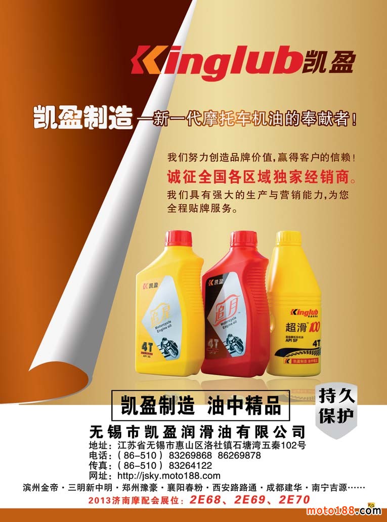 《摩托車與配件》自三月份正式改版后,雜志的    有較大的變化。因為是剛剛推出,市場還有一個適應時期,尤其一些市場人士有顧慮,擔心頻率加快以后廣告的留存期縮短,還有擔心印刷量會下降。為了慎重起見,我們雜志社在春運一結束后就安排部分人員去華東和華南及中南、西南等市場走了一遍。先后去了如皋、無錫、撫順、臺州以及商丘、鄭州、武漢、襄陽、荊州、株洲、長株潭、廣州、重慶、成都等市場,行程在隴海線南邊走了一圈。到市場第一線汲取客戶的意見,了解市場的發行,調整了部分發行點,并新建和恢復了六個發行點,進一步完善市場的發行。雜志改刊后不僅僅是期數的變化,更是一個系統的工作,這涉及到我們服務的提升,整個系統的升級。在這一期雜志內,我們會用一定的篇幅介紹我們所走過的市場的具體狀況。目前我們是行業長期調整以來僅存的專業媒體,一方面我們面臨市場的風險,如果不努力我們也會和前面已經淪陷的媒體一樣,被市場拋棄。另一方面來自我們內部及系統內的風險,即我們的管理和服務是否和雜志升級一樣,也在同步提升?我們面臨新的改革發展機會,我們能否把握住、把握好?在進行科學的發展時,不能因為太 太快而摔跤,所以我們雜志在今年的發展目標是:緊跟市場、穩中求進。在外銷市場面臨銷售不暢的現實情況下,如何服務好內需內銷市場,這也是我們和生產型企業共同要探討的課題。通過對市場的走訪,我們有了目標和方向,也有了信心和動力。正因為此,我們三月份推出雙期后所產生的一系列問題,我們都在妥善應對。今年四月份濟南會議,我們會展現我們去冬今春的勞動成果: