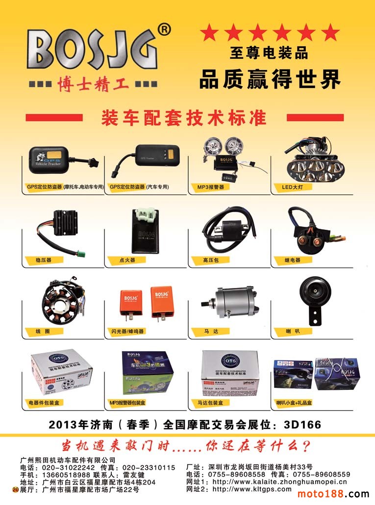 3、《中國(guó)摩托車配件生產(chǎn)企業(yè)大全(網(wǎng)址總匯)》第十一次升級(jí)版,在會(huì)上及各大市場(chǎng)同時(shí)發(fā)送。全國(guó)大市場(chǎng)還會(huì)送書上門,沒參會(huì)的企業(yè)可在門上坐等,愿意付郵費(fèi)(快遞到付也可)的企業(yè)我們都會(huì)快遞送達(dá)。