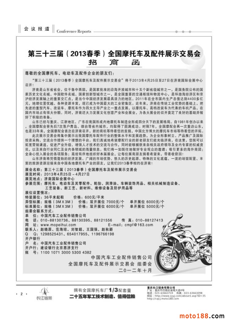 第三十三屆(2013春季)全國摩配展示交易會招商函