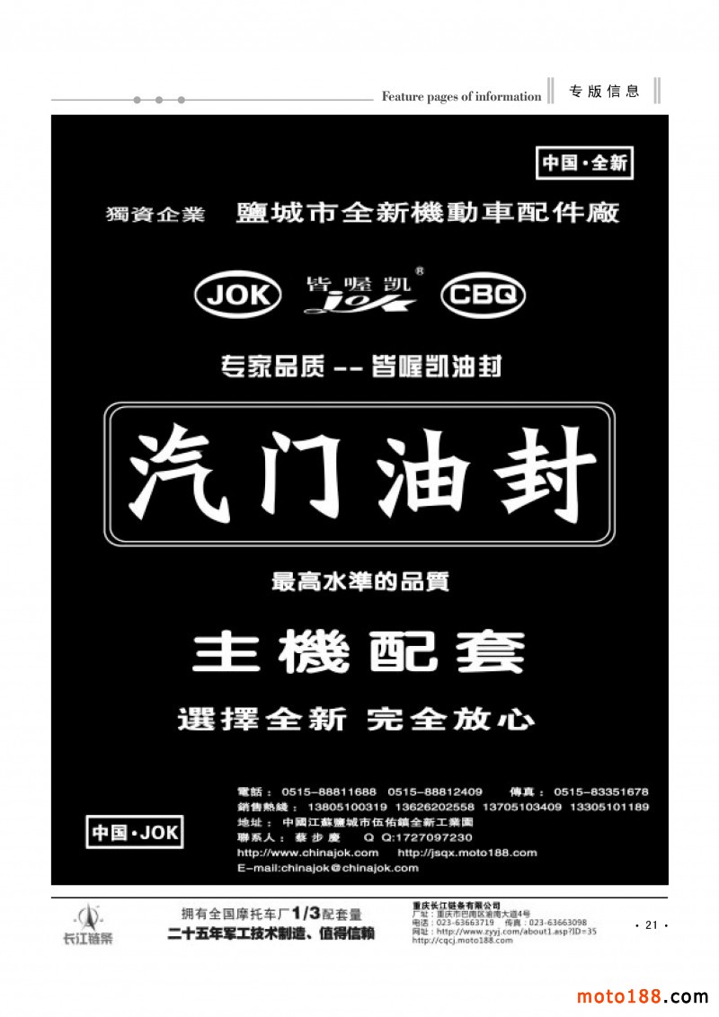 《摩托車與配件》自三月份正式改版后,雜志的    有較大的變化。因為是剛剛推出,市場還有一個適應時期,尤其一些市場人士有顧慮,擔心頻率加快以后廣告的留存期縮短,還有擔心印刷量會下降。為了慎重起見,我們雜志社在春運一結束后就安排部分人員去華東和華南及中南、西南等市場走了一遍。先后去了如皋、無錫、撫順、臺州以及商丘、鄭州、武漢、襄陽、荊州、株洲、長株潭、廣州、重慶、成都等市場,行程在隴海線南邊走了一圈。到市場第一線汲取客戶的意見,了解市場的發行,調整了部分發行點,并新建和恢復了六個發行點,進一步完善市場的發行。雜志改刊后不僅僅是期數的變化,更是一個系統的工作,這涉及到我們服務的提升,整個系統的升級。在這一期雜志內,我們會用一定的篇幅介紹我們所走過的市場的具體狀況。目前我們是行業長期調整以來僅存的專業媒體,一方面我們面臨市場的風險,如果不努力我們也會和前面已經淪陷的媒體一樣,被市場拋棄。另一方面來自我們內部及系統內的風險,即我們的管理和服務是否和雜志升級一樣,也在同步提升?我們面臨新的改革發展機會,我們能否把握住、把握好?在進行科學的發展時,不能因為太 太快而摔跤,所以我們雜志在今年的發展目標是:緊跟市場、穩中求進。在外銷市場面臨銷售不暢的現實情況下,如何服務好內需內銷市場,這也是我們和生產型企業共同要探討的課題。通過對市場的走訪,我們有了目標和方向,也有了信心和動力。正因為此,我們三月份推出雙期后所產生的一系列問題,我們都在妥善應對。今年四月份濟南會議,我們會展現我們去冬今春的勞動成果: