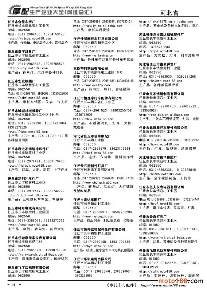 《摩托車與配件生產企業大全》打造行業信息的航母