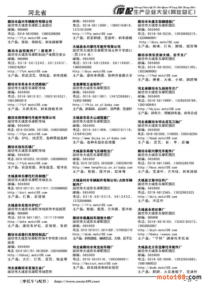 《摩托車與配件生產企業大全》打造行業信息的航母