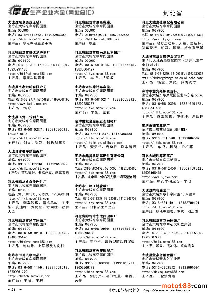 《摩托車與配件生產企業大全》打造行業信息的航母