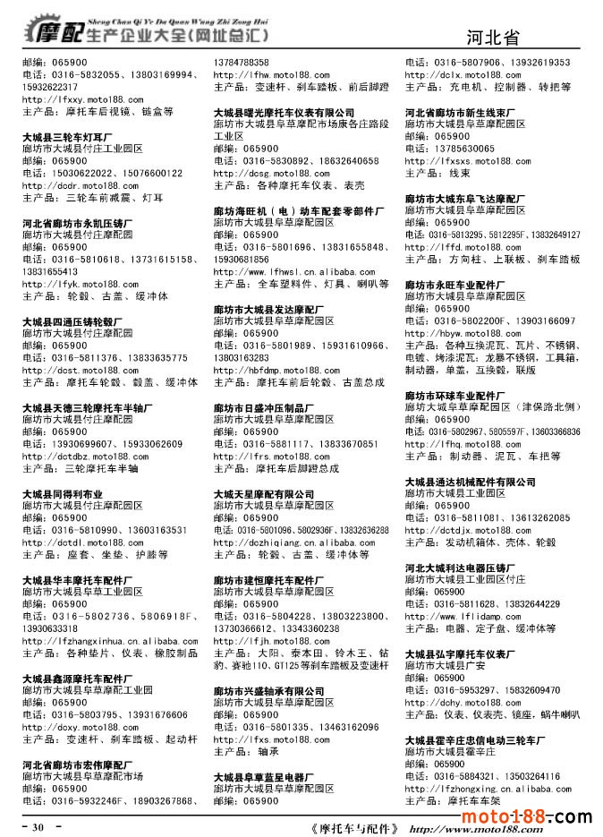 《摩托車與配件生產企業大全》打造行業信息的航母