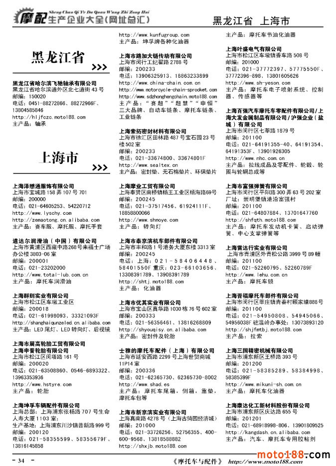 《摩托車與配件生產企業大全》打造行業信息的航母