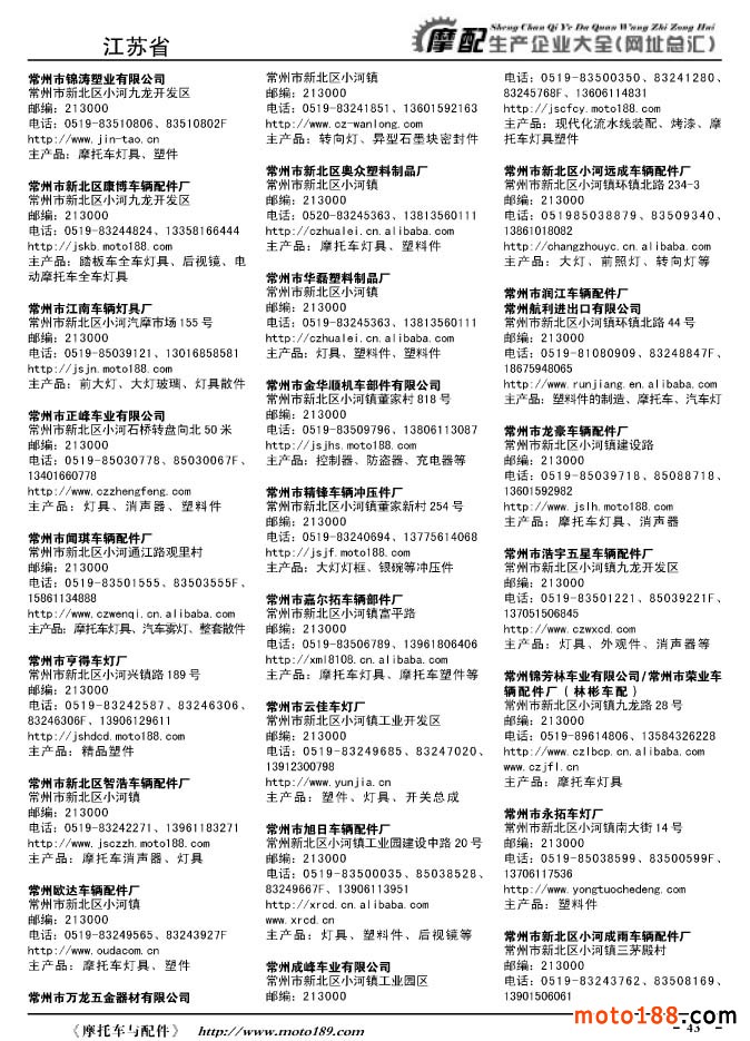 《摩托車與配件生產企業大全》打造行業信息的航母