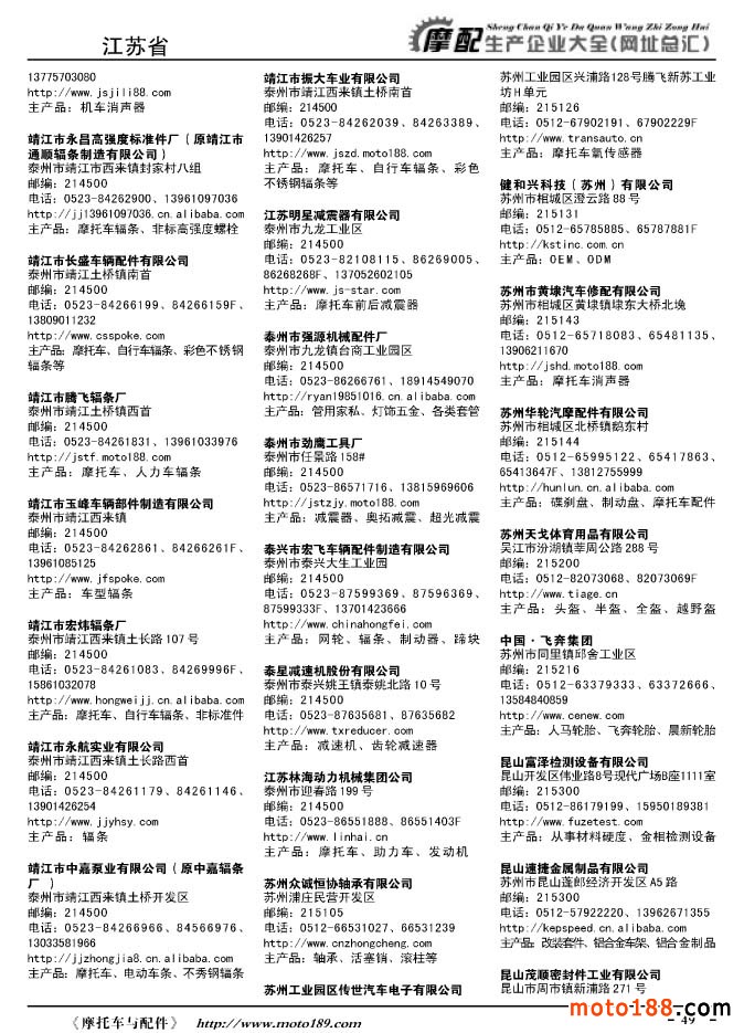 《摩托車與配件生產企業大全》打造行業信息的航母