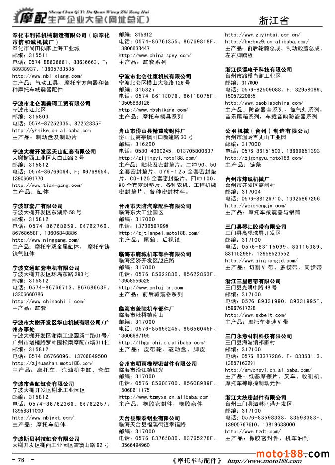 《摩托車與配件生產企業大全》打造行業信息的航母