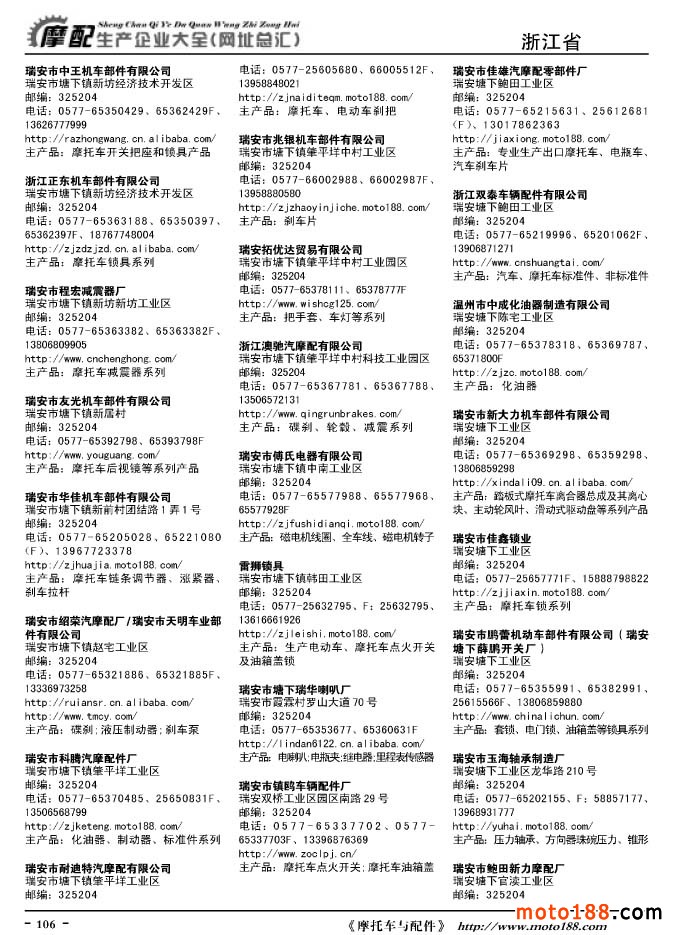 《摩托車與配件生產企業大全》打造行業信息的航母
