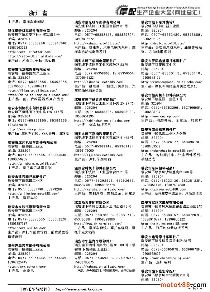 《摩托車與配件生產企業大全》打造行業信息的航母