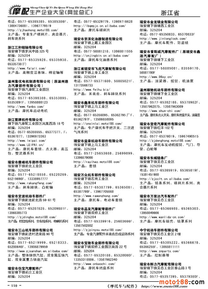 《摩托車與配件生產企業大全》打造行業信息的航母
