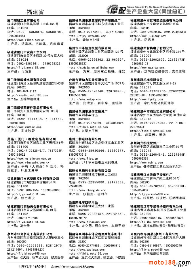 《摩托車與配件生產企業大全》打造行業信息的航母