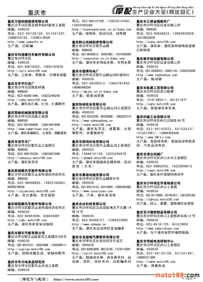 《摩托車與配件生產(chǎn)企業(yè)大全》打造行業(yè)信息的航母