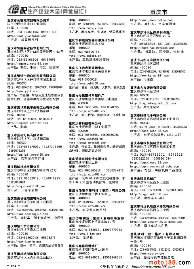《摩托車與配件生產企業大全》打造行業信息的航母