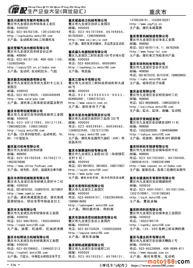 《摩托車與配件生產企業大全》打造行業信息的航母