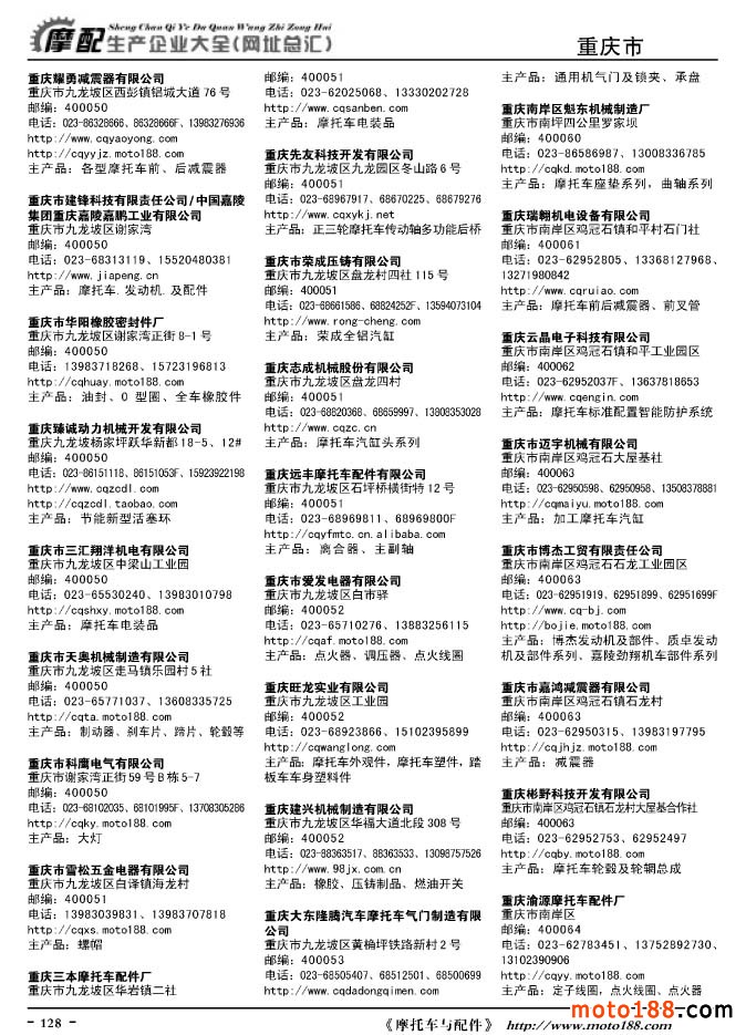《摩托車與配件生產企業大全》打造行業信息的航母