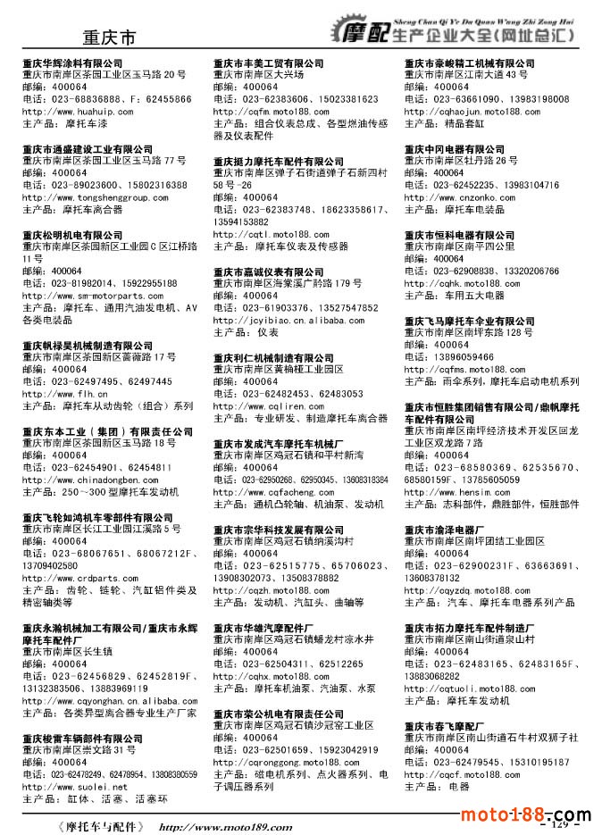 《摩托車與配件生產(chǎn)企業(yè)大全》打造行業(yè)信息的航母