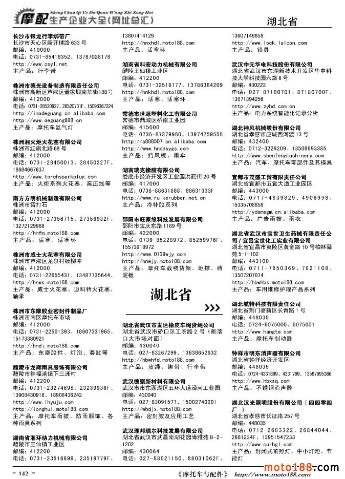 《摩托車與配件生產企業大全》打造行業信息的航母
