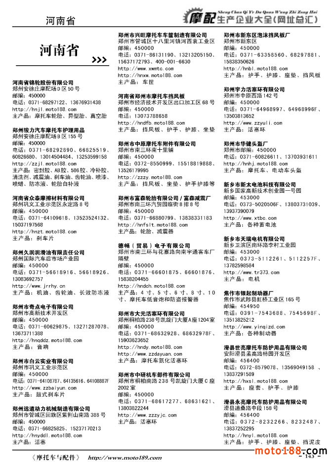 《摩托車與配件生產企業大全》打造行業信息的航母