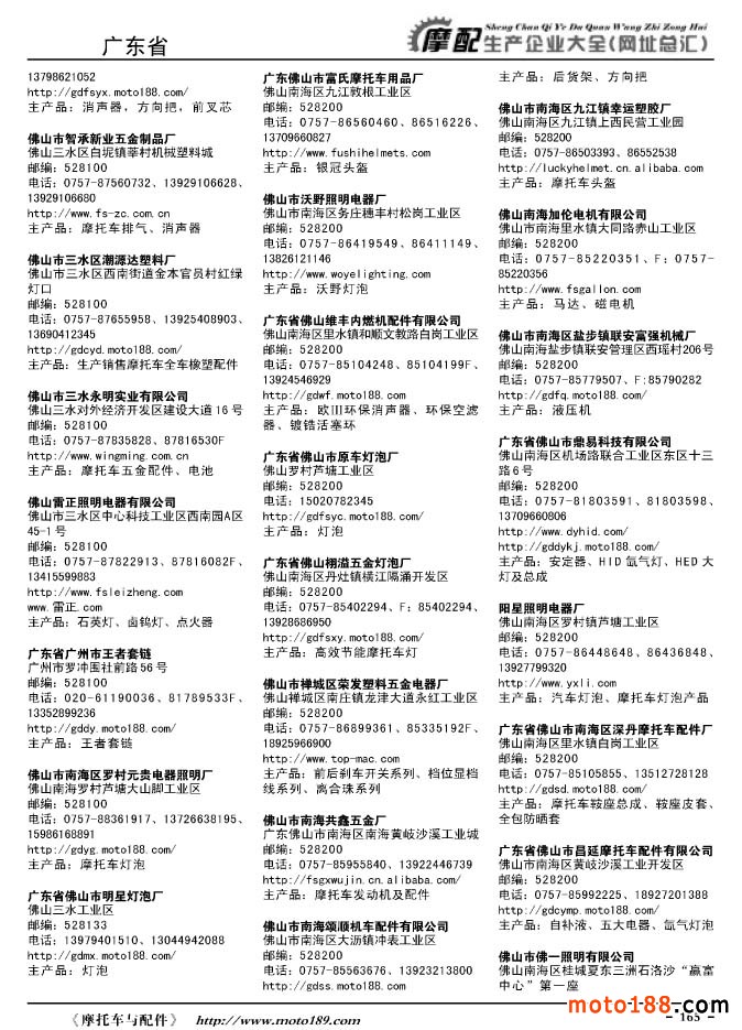 《摩托車與配件生產企業大全》打造行業信息的航母