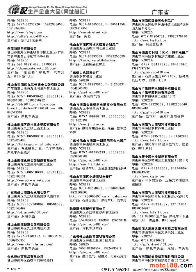 《摩托車與配件生產企業大全》打造行業信息的航母