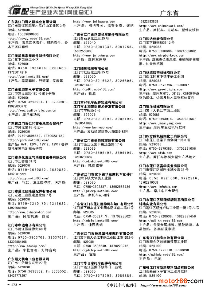 《摩托車與配件生產企業大全》打造行業信息的航母