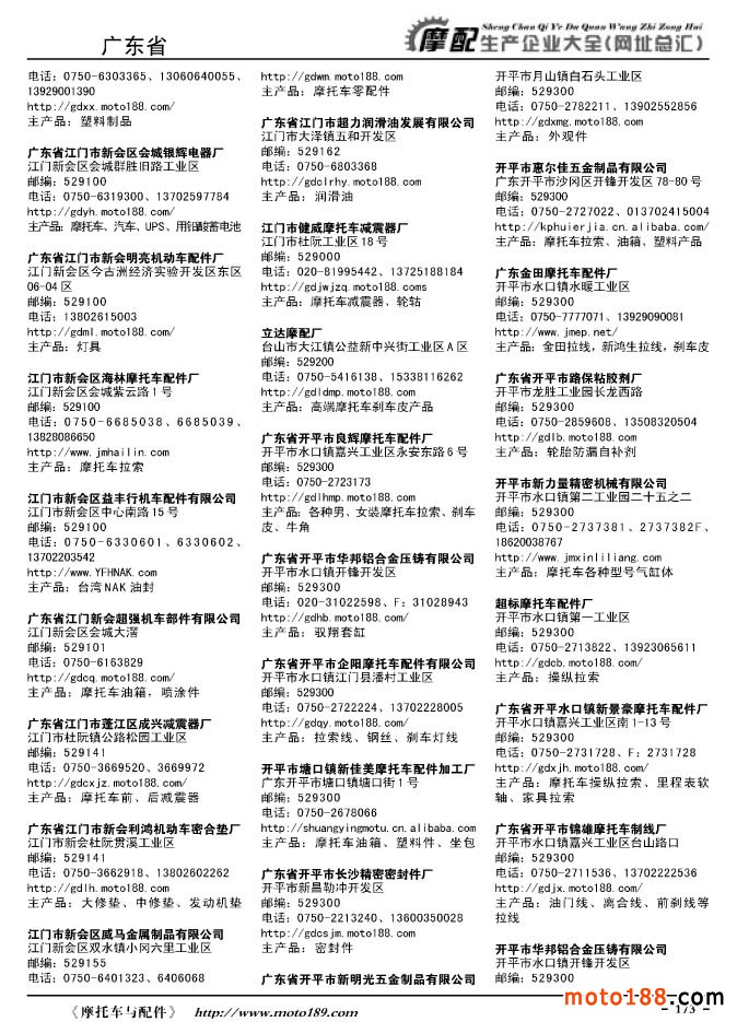 《摩托車與配件生產企業大全》打造行業信息的航母
