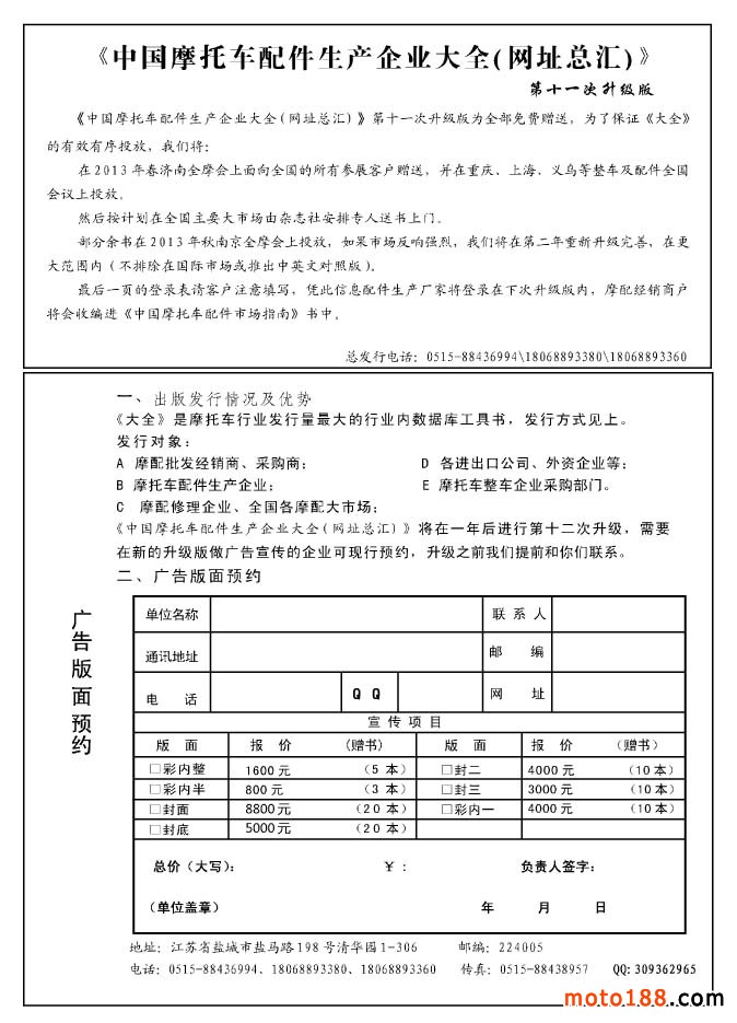 第十一次《摩托車配件生產企業大全》升級版贈送方法