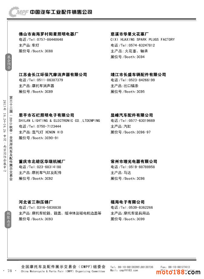 第33屆春季(濟(jì)南)全國摩托車及配件展示交易會參展企業(yè)名錄