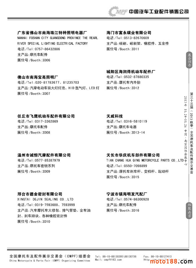 第33屆春季(濟(jì)南)全國(guó)摩托車及配件展示交易會(huì)參展企業(yè)名錄