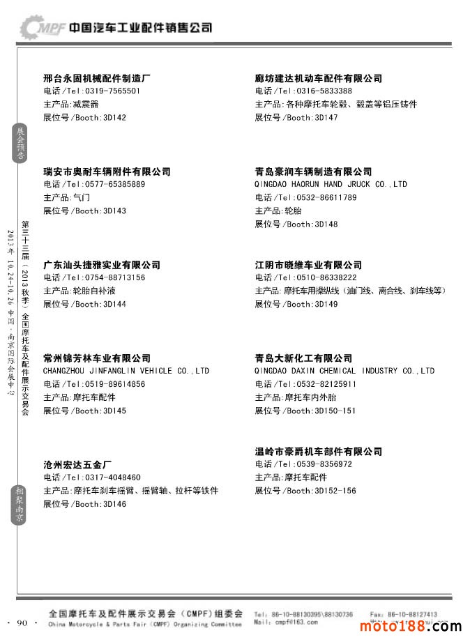 第33屆春季(濟南)全國摩托車及配件展示交易會參展企業(yè)名錄