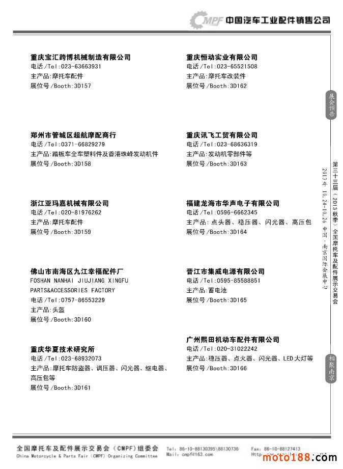 第33屆春季(濟南)全國摩托車及配件展示交易會參展企業名錄