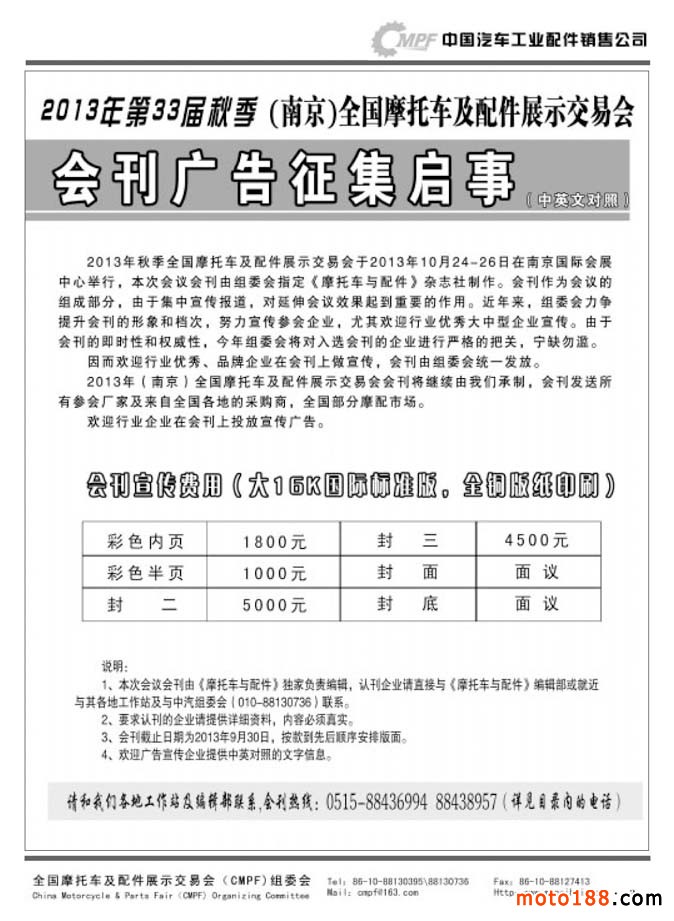 2013年第33屆秋季(南京)全摩會(huì)會(huì)刊征集啟事