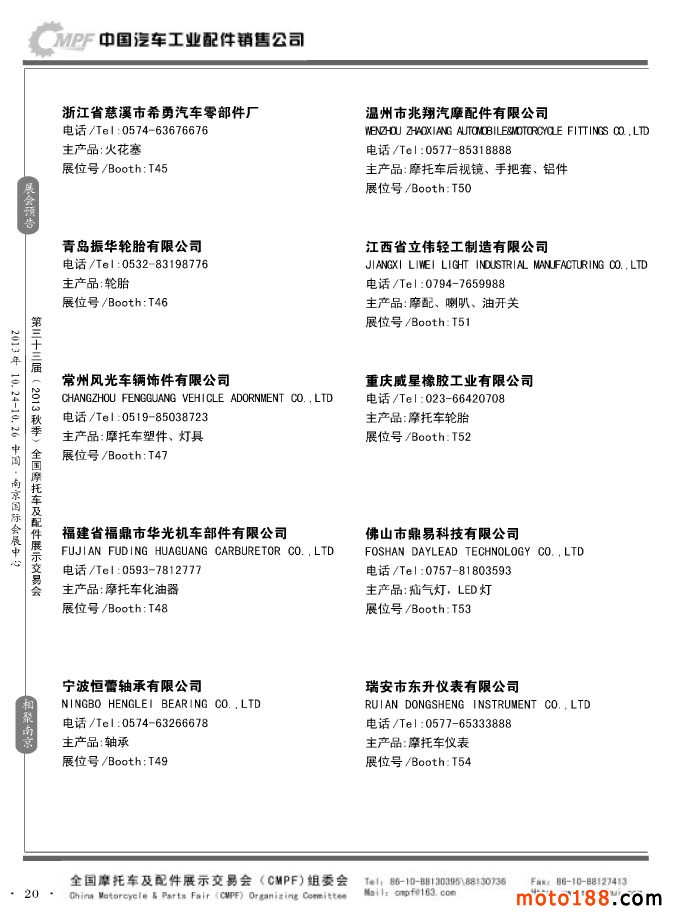 第33屆春季(濟南)全國摩托車及配件展示交易會參展企業名錄