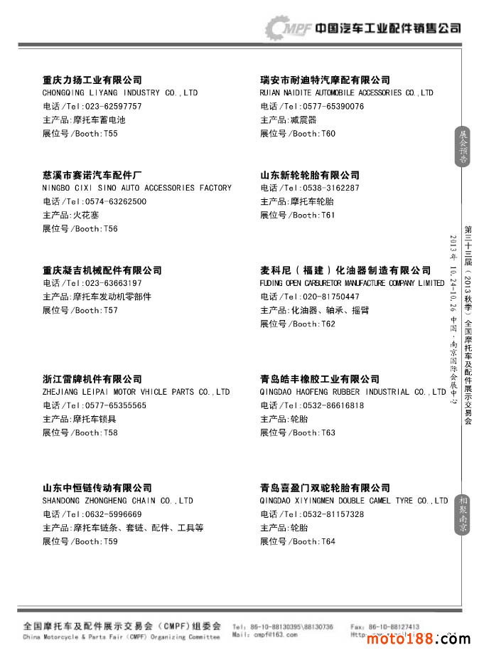 第33屆春季(濟南)全國摩托車及配件展示交易會參展企業名錄