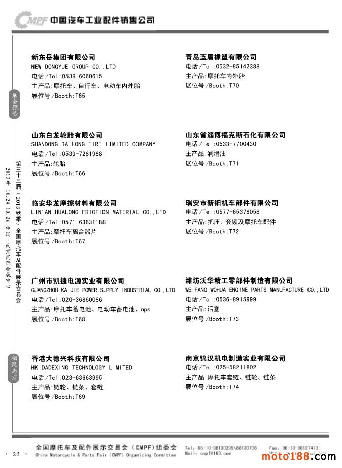 第33屆春季(濟南)全國摩托車及配件展示交易會參展企業名錄