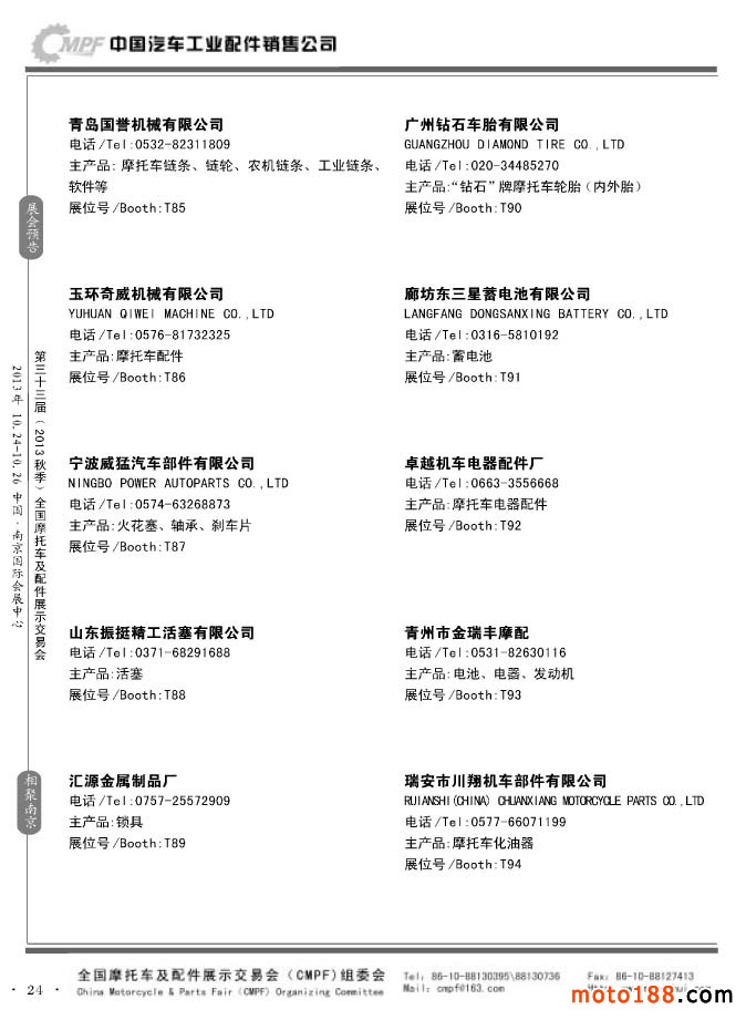 第33屆春季(濟南)全國摩托車及配件展示交易會參展企業名錄