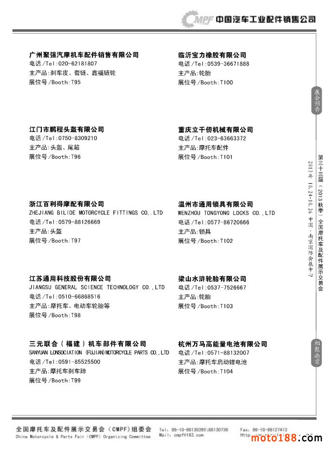 第33屆春季(濟(jì)南)全國摩托車及配件展示交易會參展企業(yè)名錄