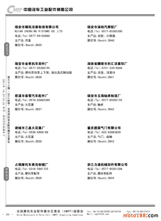 第33屆春季(濟(jì)南)全國摩托車及配件展示交易會參展企業(yè)名錄