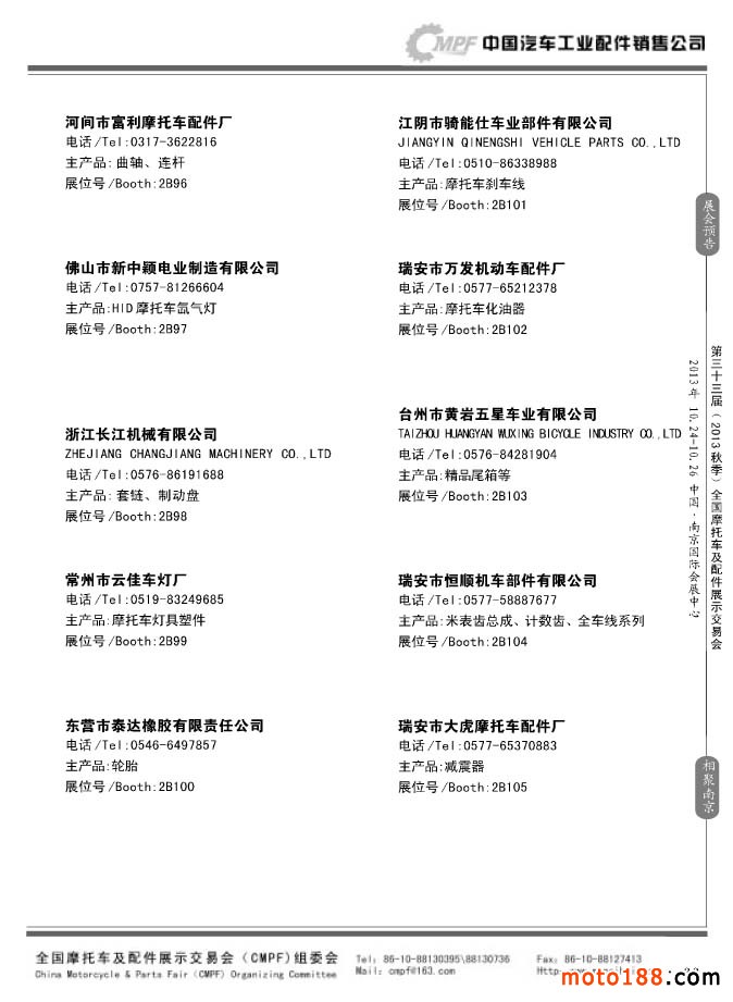 第33屆春季(濟南)全國摩托車及配件展示交易會參展企業名錄