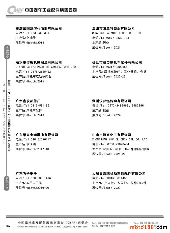 第33屆春季(濟南)全國摩托車及配件展示交易會參展企業名錄