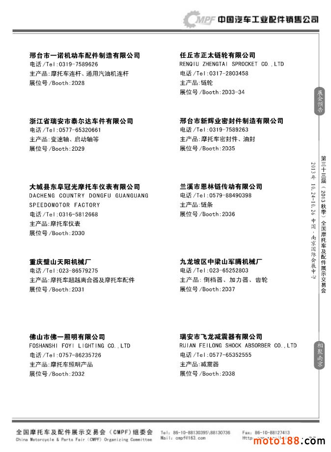 第33屆春季(濟南)全國摩托車及配件展示交易會參展企業(yè)名錄