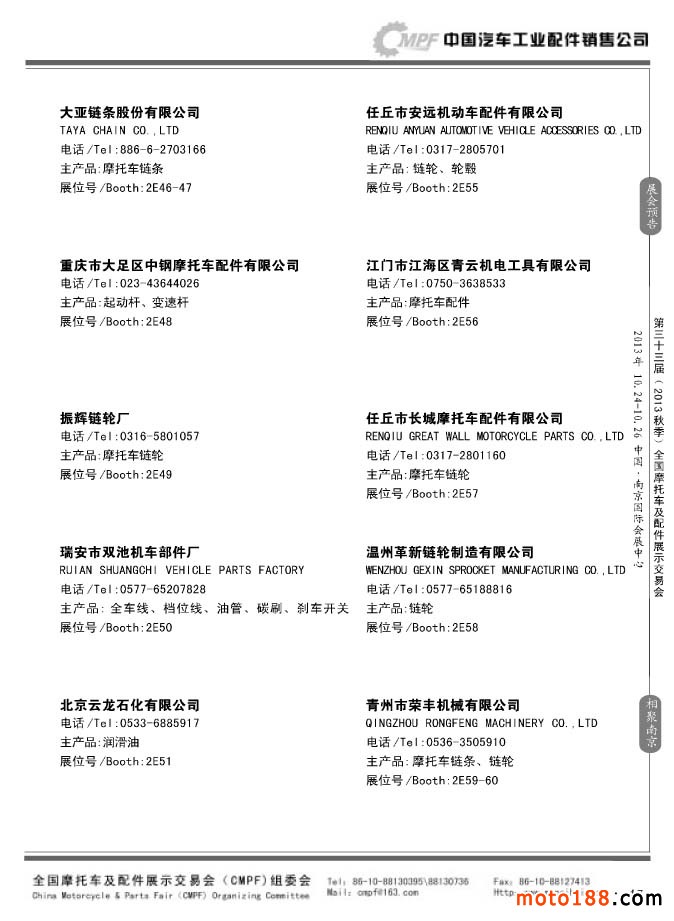 第33屆春季(濟南)全國摩托車及配件展示交易會參展企業名錄