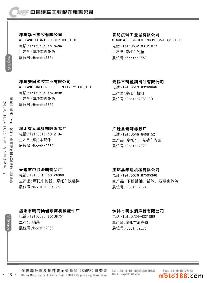 第33屆春季(濟南)全國摩托車及配件展示交易會參展企業名錄
