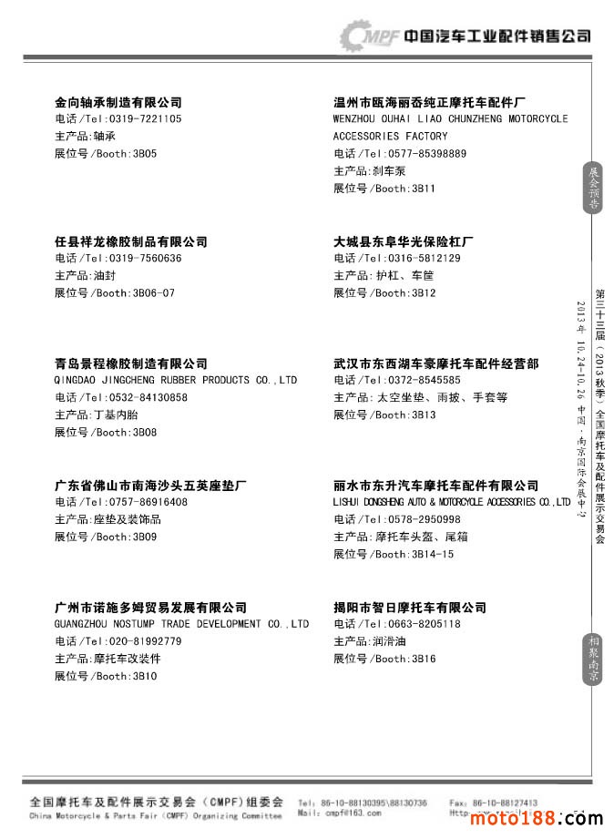 第33屆春季(濟南)全國摩托車及配件展示交易會參展企業名錄