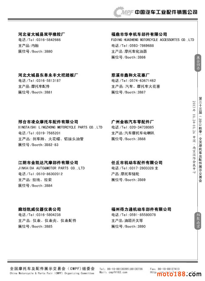 第33屆春季(濟南)全國摩托車及配件展示交易會參展企業名錄