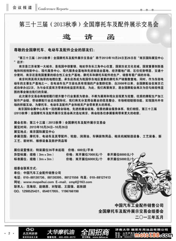 第三十三屆(2013秋季)全國摩配展示交易會招商函