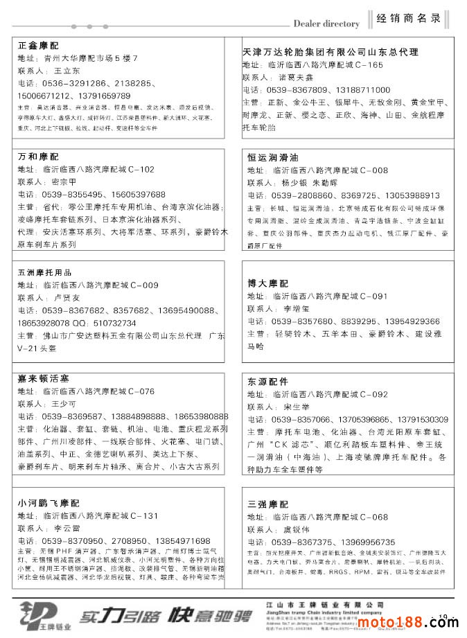 在4月29日全摩會結(jié)束之后,也有兩個與行業(yè)有關(guān)的會議,即5月6日的第23屆中國國際自行車展覽暨2013年中國國際摩托車及零部件交易會在上海新國際展覽中心召開。這次會議是以自行車及配件唱主角,電動車和摩托車作為配角而舉辦的大型會議,這次會議在自行車行業(yè)是規(guī)模最大的會議。與我們摩托車行業(yè)有關(guān)的一些從事外貿(mào)的整車廠,如建設(shè)、錢江等四五家廠家在附展館有一專門展廳。另外,輪胎企業(yè)有一個專門的展館,展品是外胎和內(nèi)胎。其中外胎來的大廠較多,也較全,比如正新、建大、朝陽,國內(nèi)有影響力的都基本來參會了,是這次會議的亮點。上海會議結(jié)束后,我們帶了部分外貿(mào)報紙和雜志在上海幾個市場進行了發(fā)放,同時走訪了這些市場。自去年上半年,宜川市場拆遷后,在古浪路和滬太路分別形成了兩個市場。我們?nèi)チ嗣恳患疑虘簦占袌隹蛻糍Y料,為我們今年下半年《華東市場指南》的出版進行準備。這兩個市場都不算大,每一個市場有六七十戶做摩配生意的,有不少商家就是從宜川市場搬來的。還有兩個小市場,科雄和星中路市場,商戶比年初又有減少,市場明顯在萎縮。我們這次的《華東市場指南升級版》原準備將江西不收錄其中,準備和中南地區(qū)一起編入,但如果華東市場萎縮輻度較大,江西省還將編入華東地區(qū)。