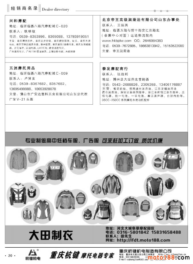 20 經銷商名錄+大田制衣